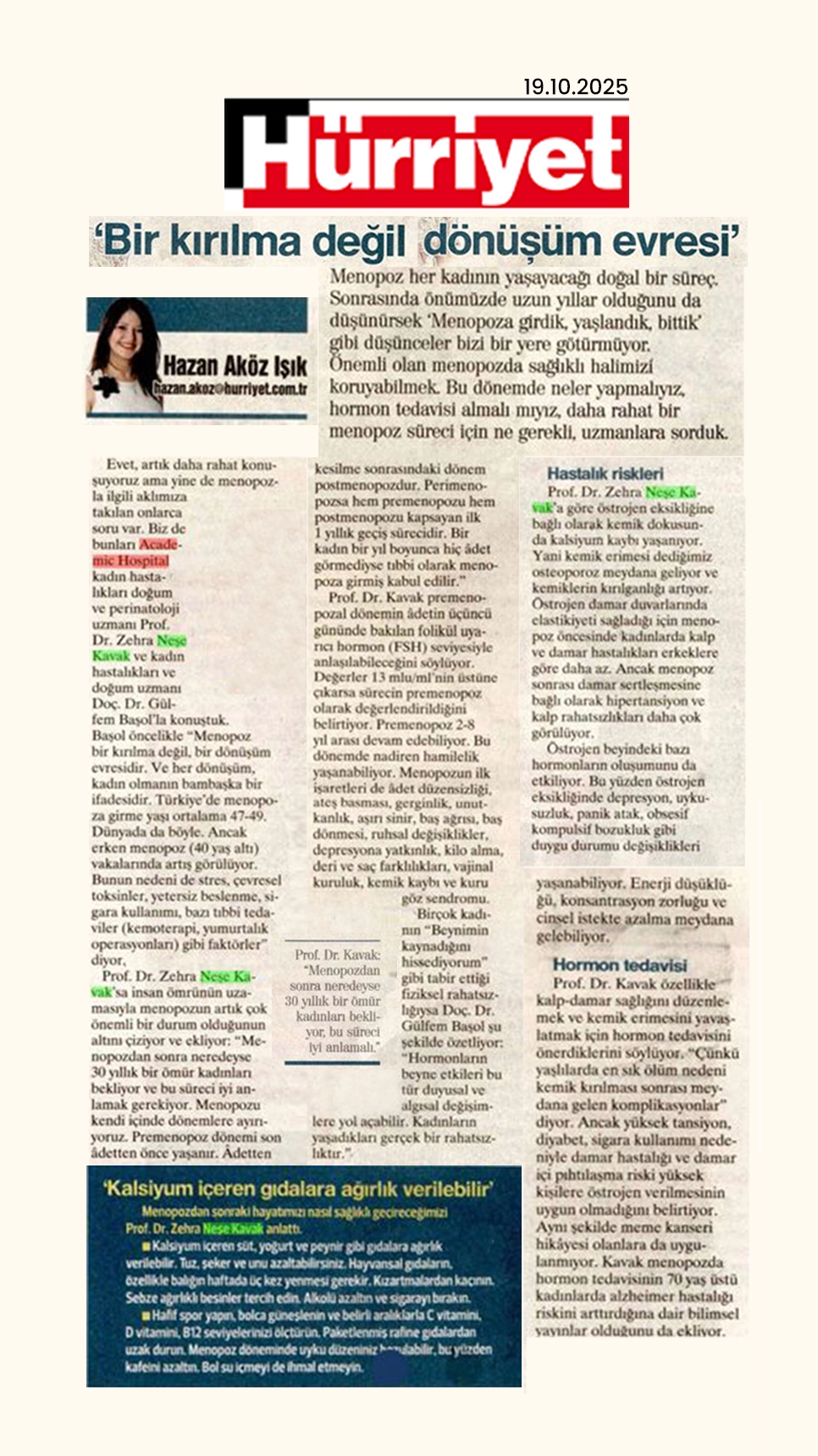 Prof. Dr. Prof. Dr. Zehra Neşe Kavak'ın Hürriyet Gazetesi'ne Verdiği Röportaj